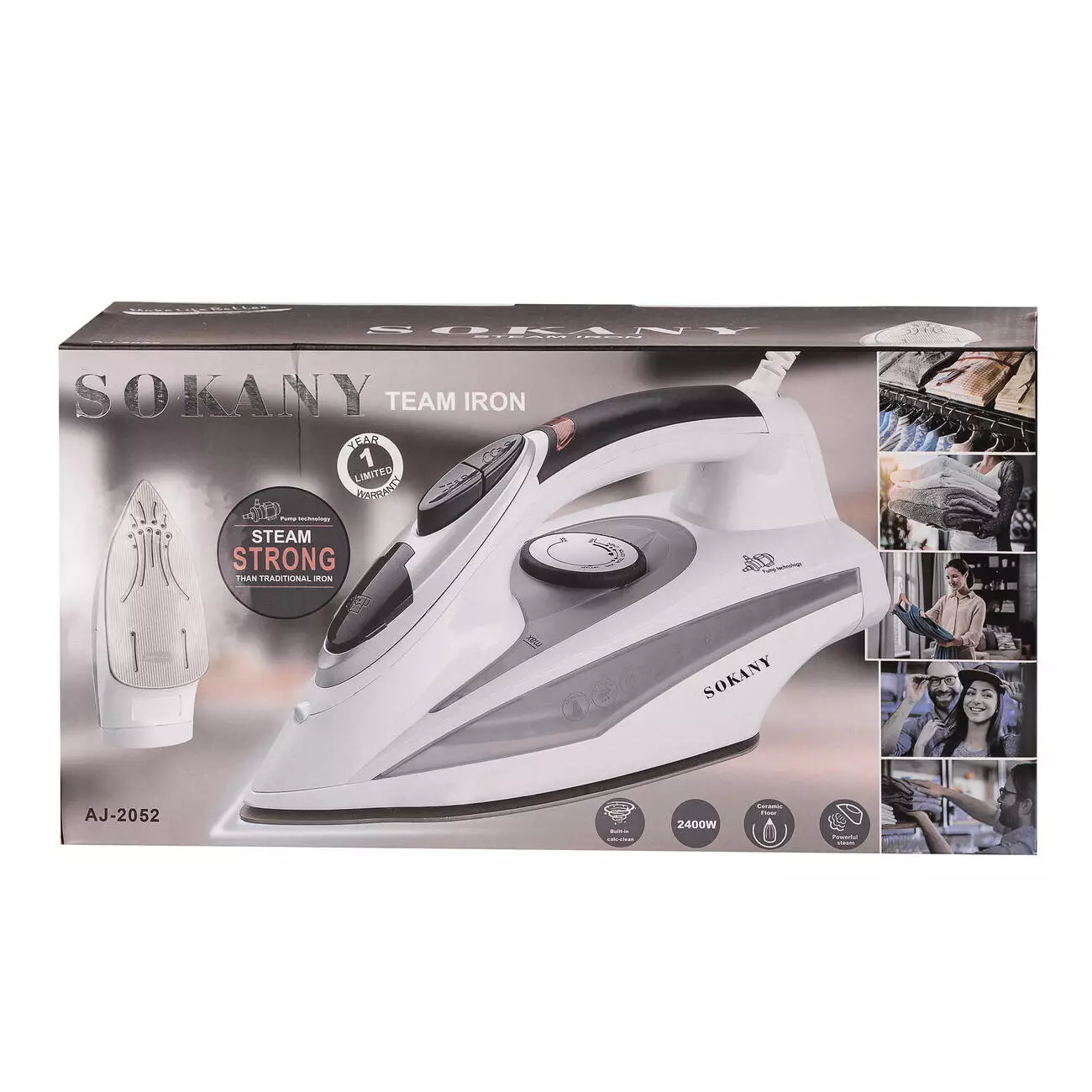 Завдяки потужності 2400 Вт, SOKANY AJ-2052 забезпечує швидке нагрівання і ефективне прасування, забезпечуючи вам чудові результати і зручність у використанні.