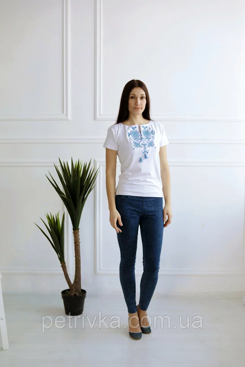 Прекрасна вишита жіноча футболка, вишивка орнамент