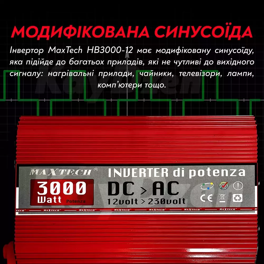 MaxTech HB3000-12 имеет модифицированную синусоиду, которая