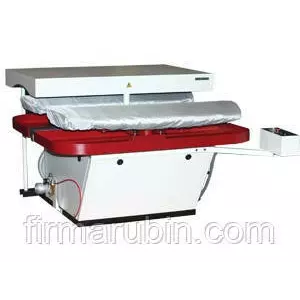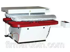 Пресс сушильно-гладильный ротационный, двухподушечный. предназначен для глажения прямого и фасонного белья, при остаточной влажности не более 50%.. Предназначены для глажения фасонного (халаты, пижамы и т.п.) и прямого (простыни, пододеяльники), а также белья нестандартной величины хлопчатобумажных волокон, шерсти, шелка, синтетики. Пока белье в прижатом состоянии гладится на одной плите, застелается другая плита. После опускания первой плиты оператор нажимает кнопку поворот и плиты поворачиваются на 180. При этом подъем плиты с бельем производится автоматически. Дальше процесс повторяется. Оба пресса работают при помощи сжатого воздуха.