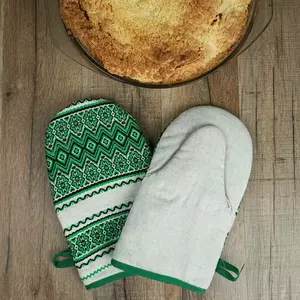 Красочная прихватка-рукавица несомненно станет надежным помощником хорошей хозяйки! Достаточно плотная ткань и мягкий наполнитель позволяют прихватке долго служить Вам и оберегать Ваши пальчики от нежелательного перегревания в процессе готовки. Контрастный орнамент добавит в интерьер этнического шарма. Благодаря петельке этот кухонный аксессуар всегда будет на своем месте.
