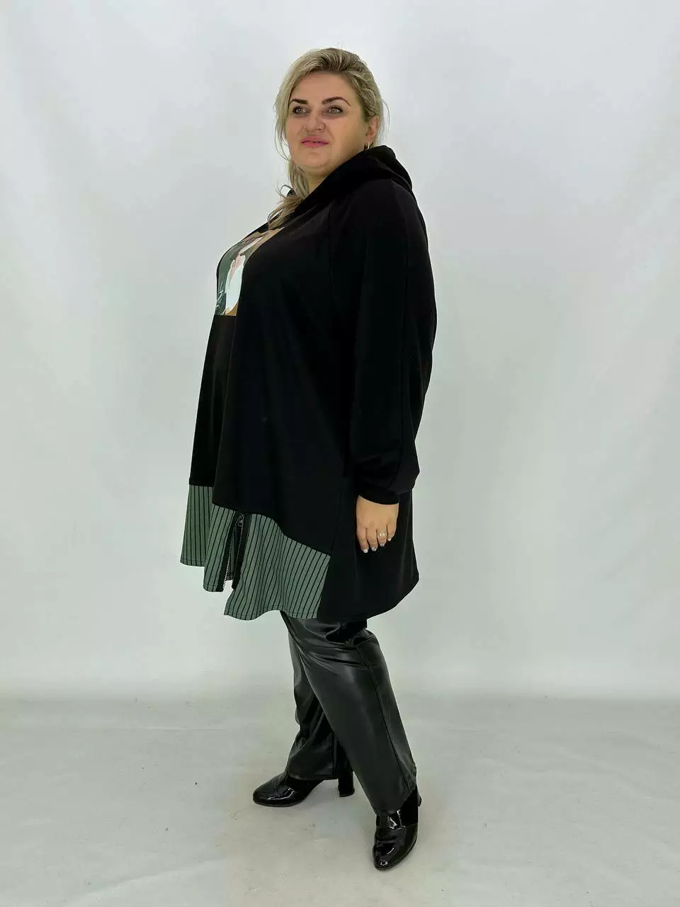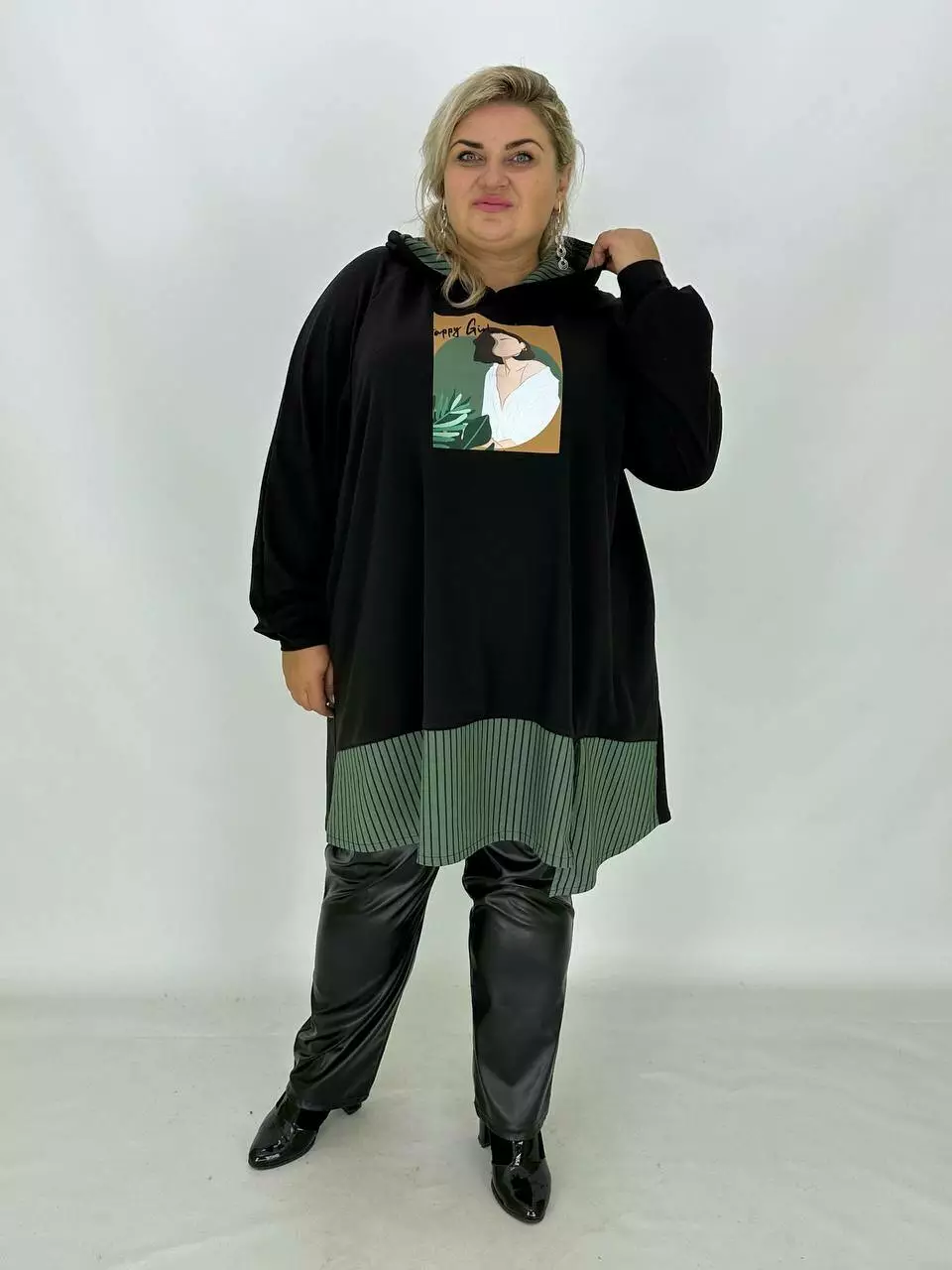Довжина туніка-трапеція з капюшоном та трикотажу двонитка з гарною розтяжністю