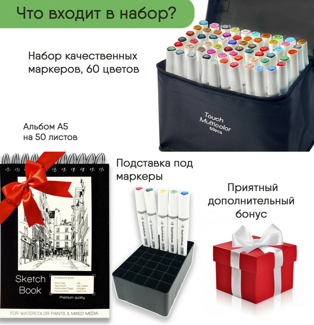 Ви купуєте Набір маркерів двосторонніх Touch Multicolor 60 кольорів
