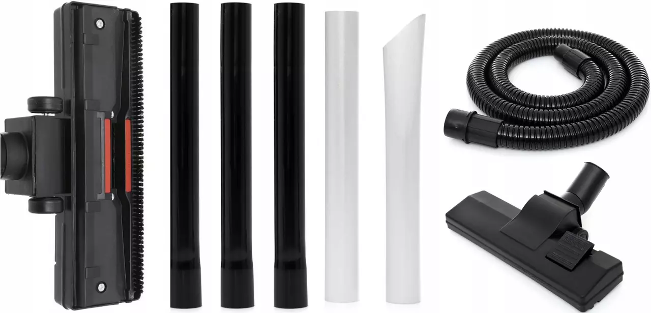 В комплект входит универсальная насадка для пылесоса и трехсекционная труба длиной 95 см.