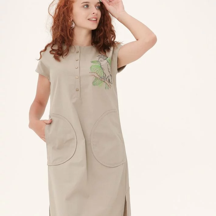 Дизайнерське плаття з цікавою вишивкою по лінії грудей. Сукня