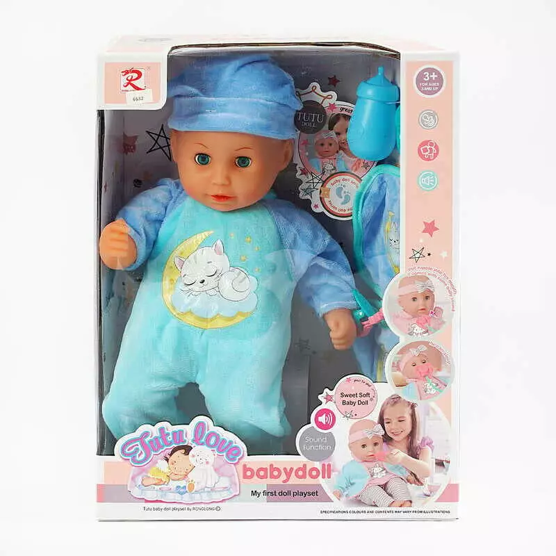 Пупс 6632 (16) м’якотілий, п’є з пляшечки, закриває очі, аксесуари, музичний чіп, висота 36 см, в коробці