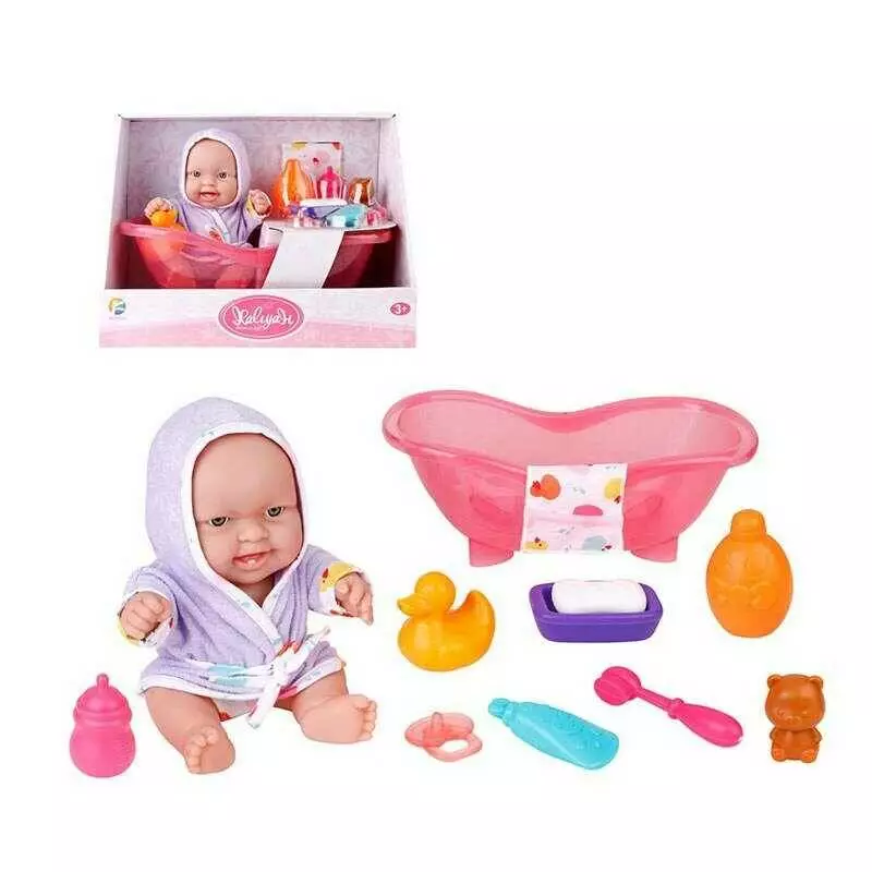 Пупс 718 B (18/2) ванна, рушник, засоби для купання, пискавка, висота 24 см, в коробці
