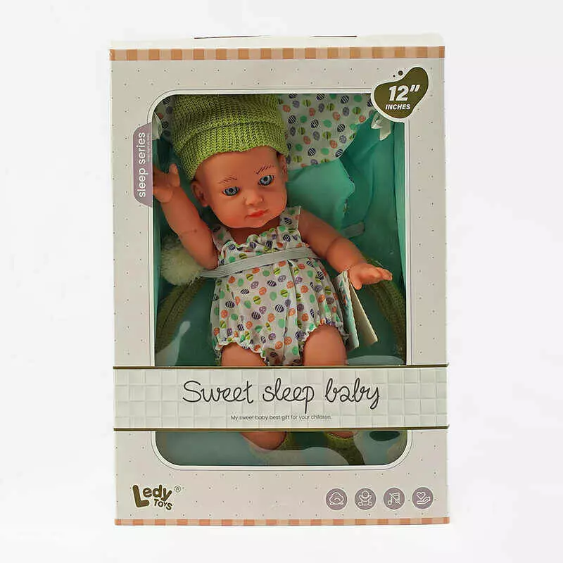Пупс LD 8809 B (24/2) м’яке ліжечко, розвивальна дуга, висота 32 см, в коробці