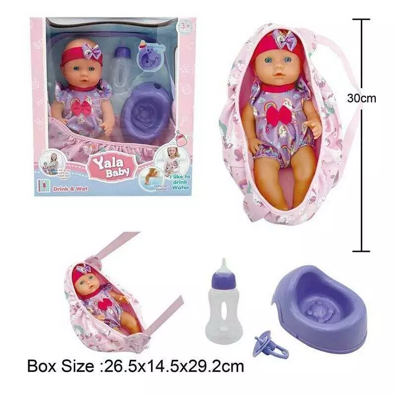 Пупс YL 2430 H-B (24) висота 30 см, п`є з пляшечки, ходить на горщик, сумка-переноска, знімний одяг, горщик, пустушка, пляшечка, в коробці