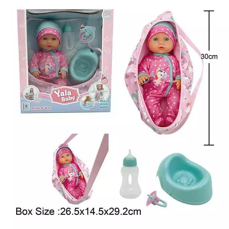 Пупс YL 2430 H-C (24) висота 30 см, п`є з пляшечки, ходить на горщик, сумка-переноска, знімний одяг, горщик, пустушка, пляшечка, в коробці