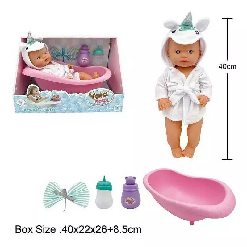 Пупс YL 2440 J-E (12) висота 40 см, п`є з пляшечки, ходить на горщик, ванна, халат, рушничок, в коробці