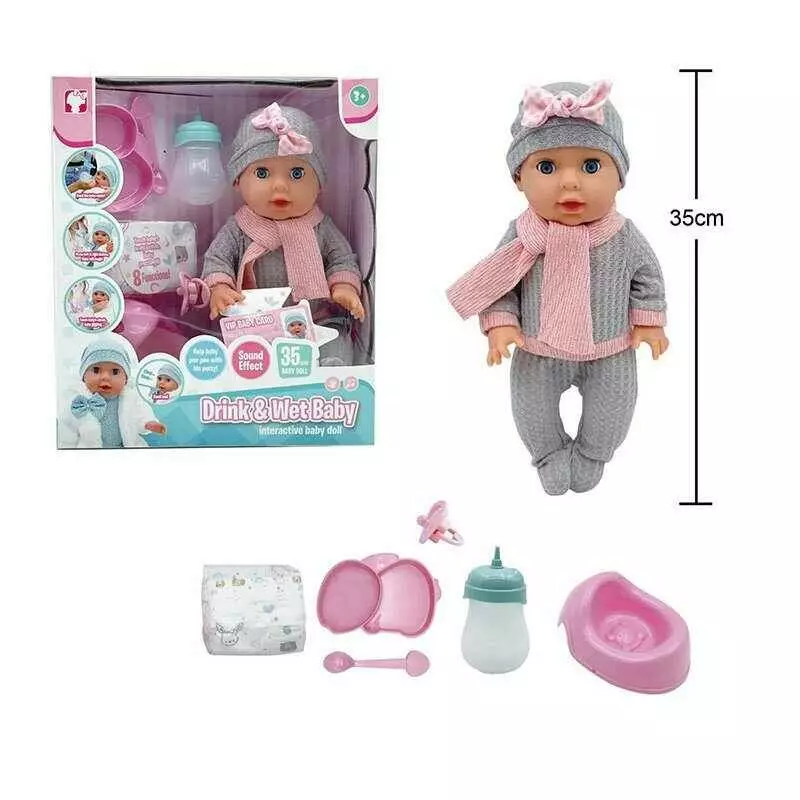 Пупс YL 2535 A-B (12) висота: 35 см, на батарейках, звуки, сенсорні датчики, п’є, “ходить” на горщик, заплющує очі, аксесуари, в коробці