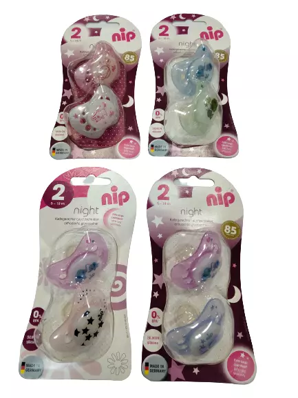 <p><strong>Світиться в темряві</strong></p><p><br><em>Соска-пустушка NIP Нічний сон №2 виготовлена з особливо м'якого силікону і ідеально адаптована до розвитку прикусу.</em></p><p><br><strong>Основні переваги:</strong></p><p><br></p><ul><li><em>світиться в темряві, завдяки чому її завжди можна знайти</em></li><li><em>захисний диск (загубник) пустушки адаптований до пропорцій обличчя малюка</em></li><li><em>форма диску у вигляді метелика береже підборіддя від подразнення</em></li><li><em>диск соски-пустушки, завдяки великим отворам, пропускає повітря і дозволяє ніжній шкірі дитини дихати</em></li><li><em>відсутність кільця дозволяє дитині зручно смоктати пустушку в будь-якому положенні</em></li><li><em>доступні в розмірі 1-3</em></li><li><em>милий дизайн, кольори в асортименті</em></li><li><em>не містить Бісфенол А.</em></li></ul><p><br><strong>Характеристики:</strong></p><p><br></p><ul><li><em>2 шт в комплекті.</em></li><li><em>5-18 місяців.</em></li></ul>