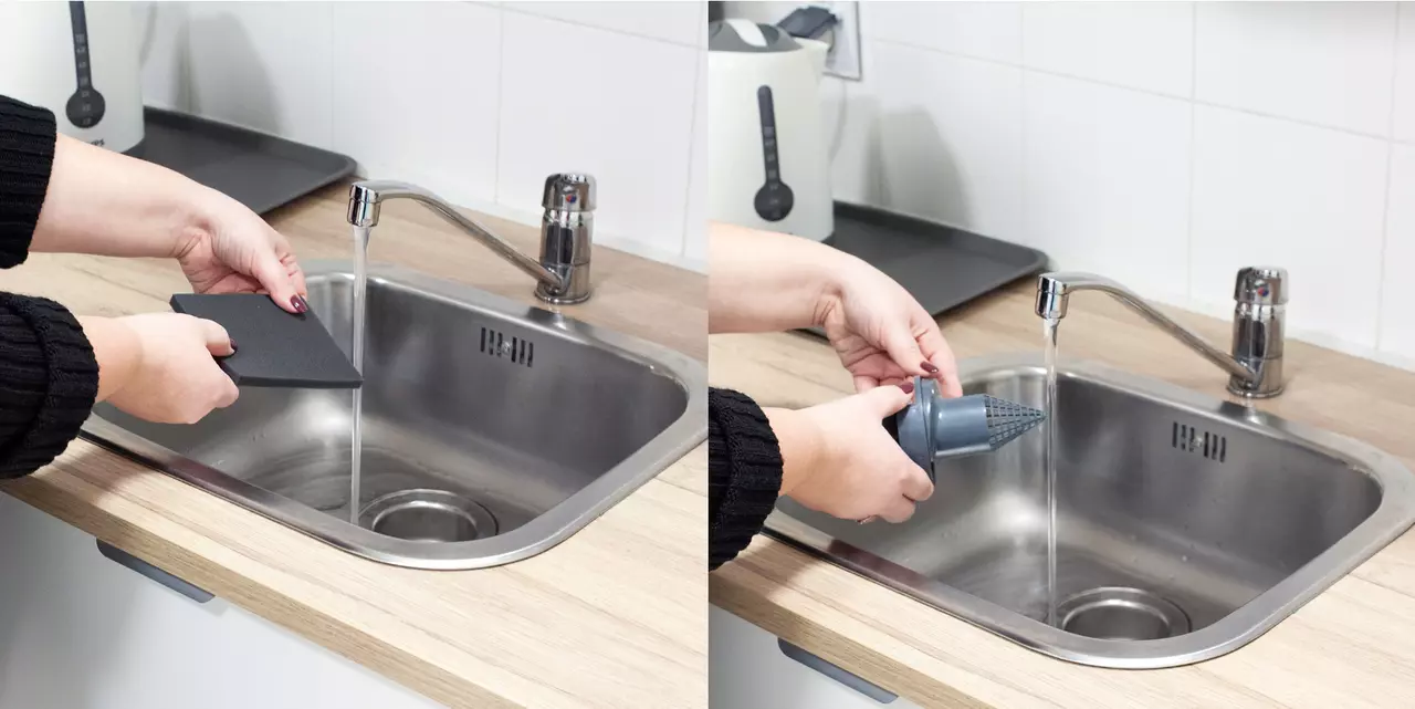 В любой момент, отсоединив пылесос от механизма, мы можем промыть бак и фильтры, чтобы тщательно удалить остатки грязи.
