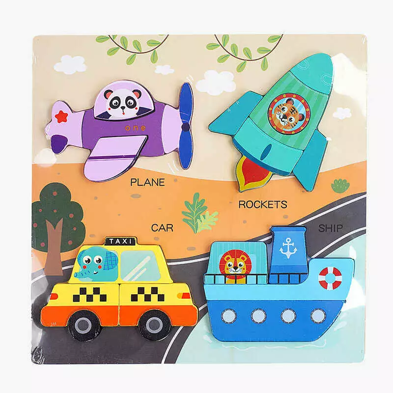 Пазли-вкладиші C 64014 (60) дерев`яні, 4 фігурки, підписи англійською мовою, в плівці
