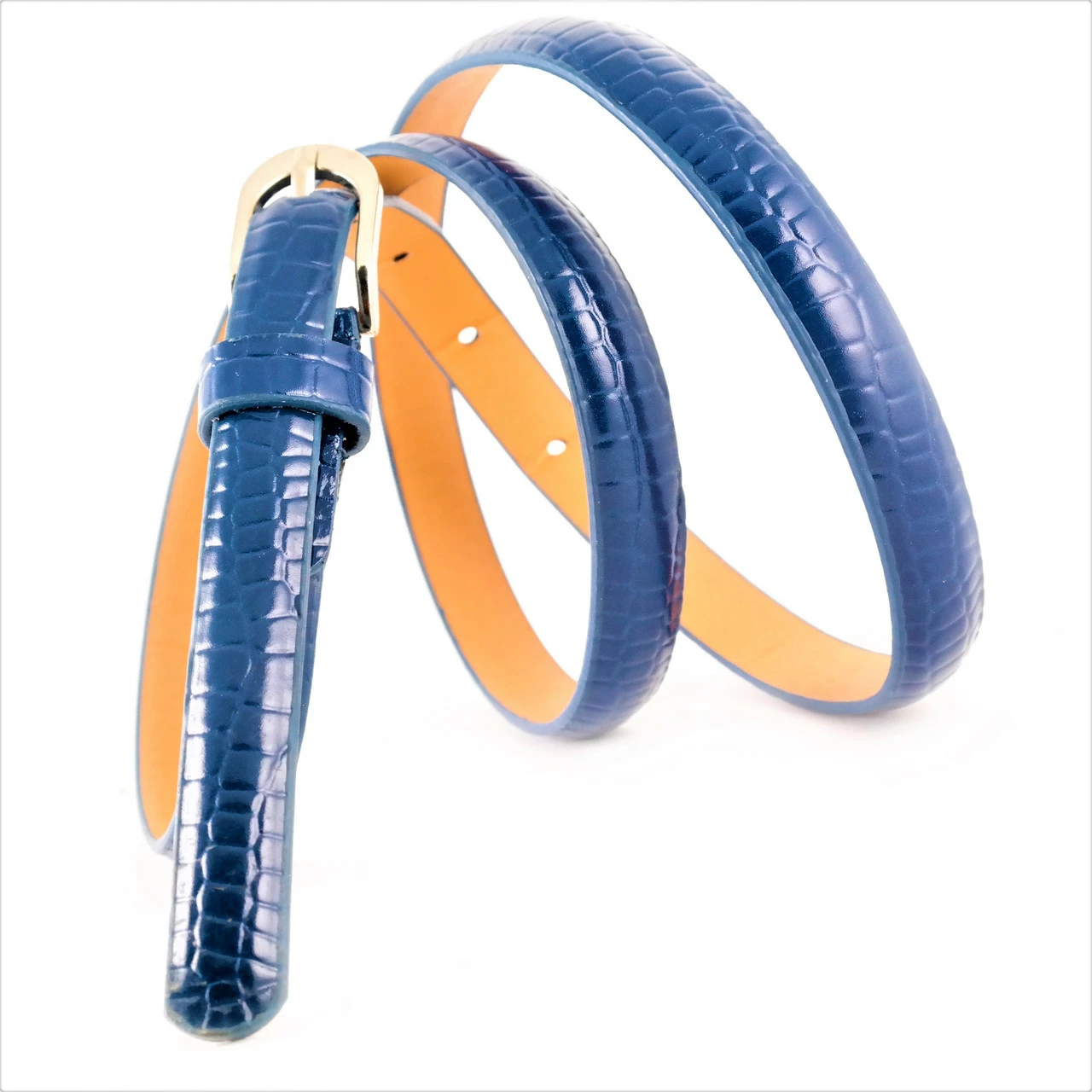 Ремень женский экокожа лак, ширина 1,5 см. длина 105-110 см. цвет Тёмно-синий