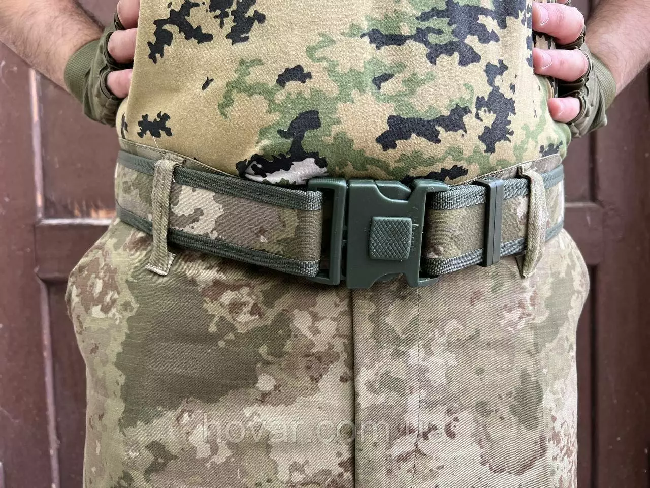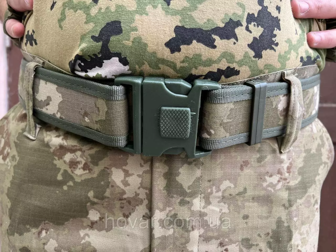 Тактичний поясний ремінь виготовлений із зносостійкого нейлону з кордурою. Швидко відкривається одним рухом завдяки застібці-фастекс з фіксатором замок.