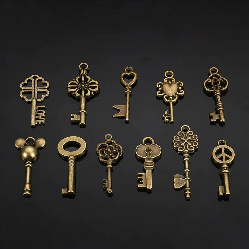 Ретро підвіски у формі ключів RESTEQ 125 шт. Металеві підвіски ключі для рукоділля. Набір талісманів. Шарми встановити. Шарміки
