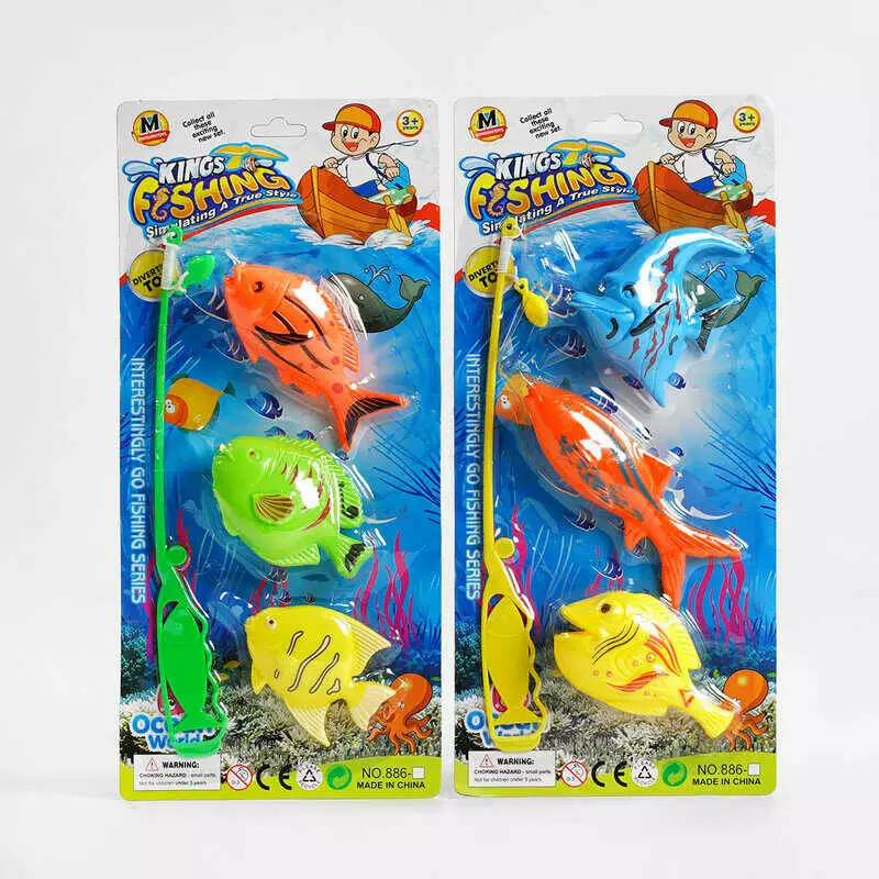 Риболовля 886-1-2-3-4 (336/2) 2 види, 3 рибки, вудка, на листі