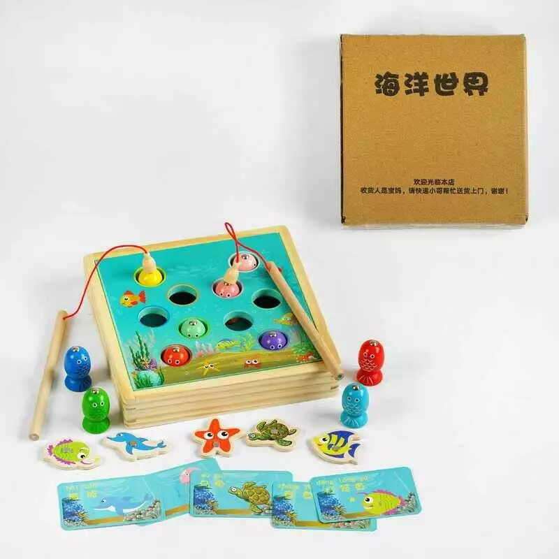 Магнітна риболовля C 61747 (36) дерев`яна, 12 магнітів, 10 рибок, 2 вудки, в коробці