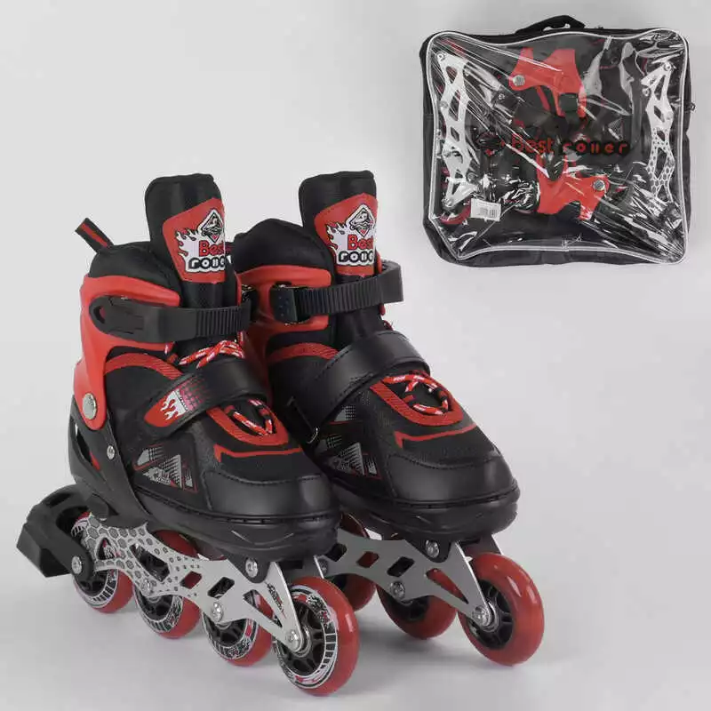 Ролики 8211-S Best Roller /размер 30-33/ цвет – КРАСНЫЙ (6) колёса PU, ПЕРЕДНЕЕ КОЛЕСО СВЕТ, в сумке, устілка – 17-19.5 см, d колес – 6.5 см