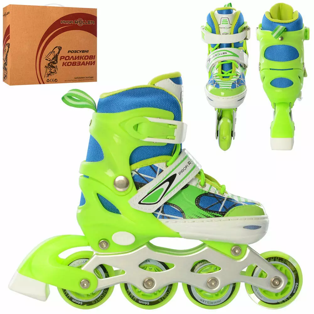 Ролики A 4141-S-GR(31-34) розсув.,шнур.+бакля,ал.рама,кол.ПУ64мм,1 світло,зелений,кор.,35-28-10,5см