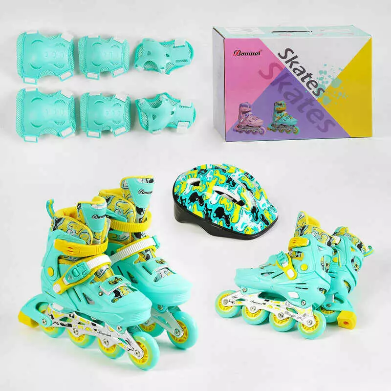 Ролики с захистом 30202-М розмір 35-38 (6) колір БІРЮЗОВИЙ, колеса