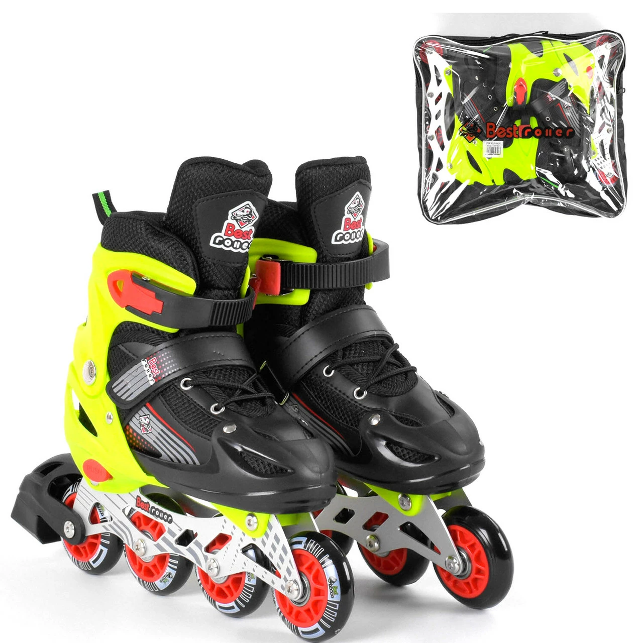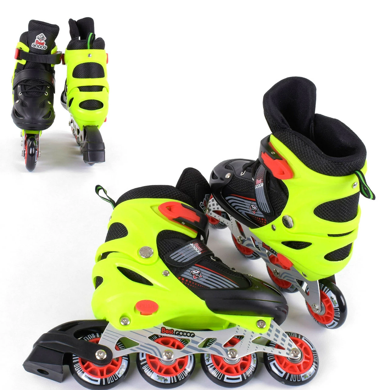 Стильные роликовые коньки с цветными колёсами, отличается своим