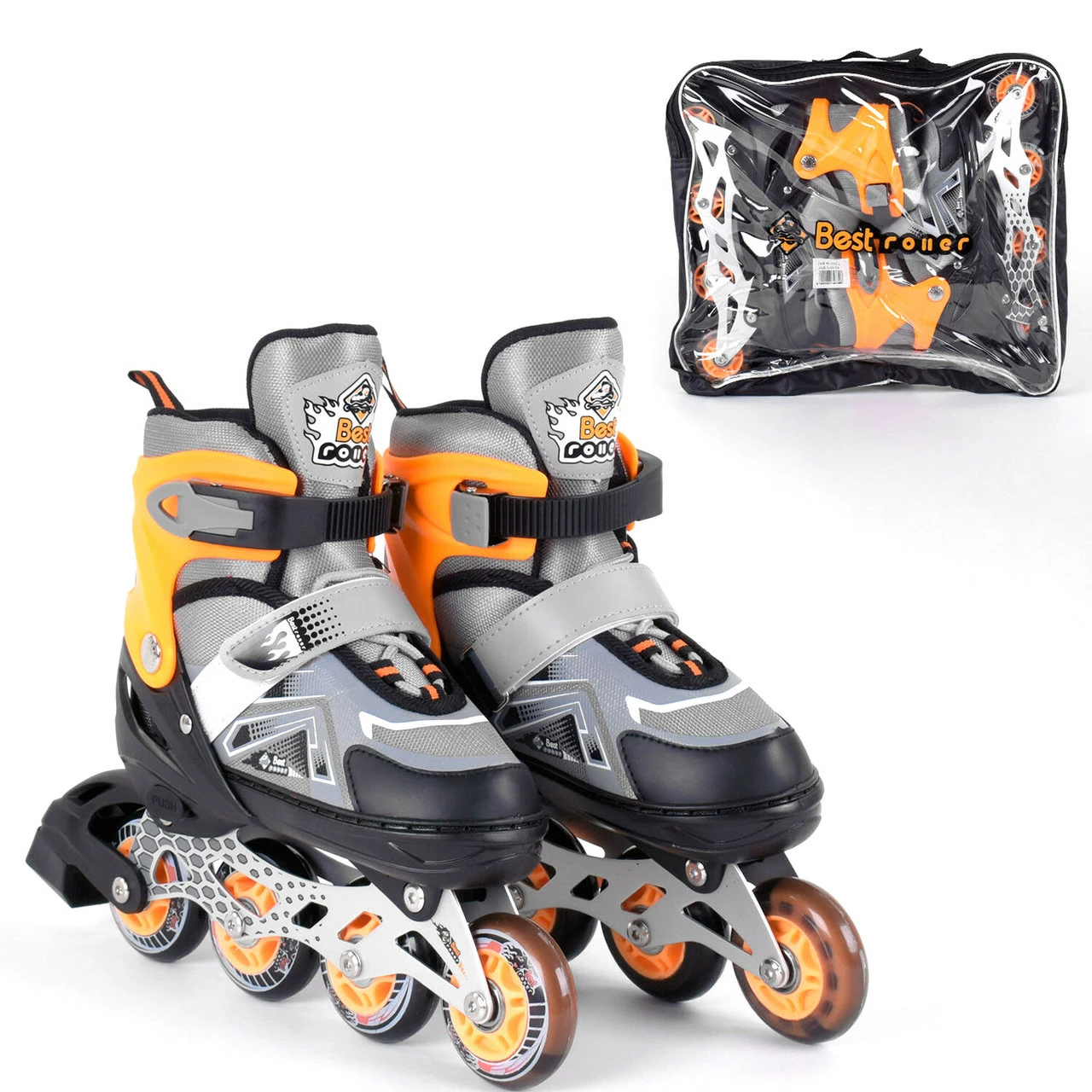 Стильные роликовые коньки с цветными колёсами, отличается своим