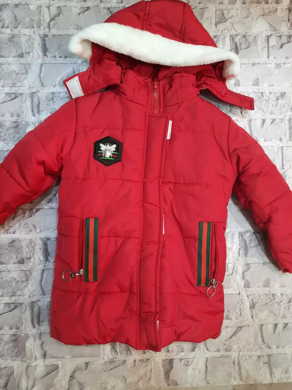 Курточка на зиму, всередині овчина, яка не відстібається.Дуже тепла!! Розміри 110 см,116 см і 122 см. Квіт червоний