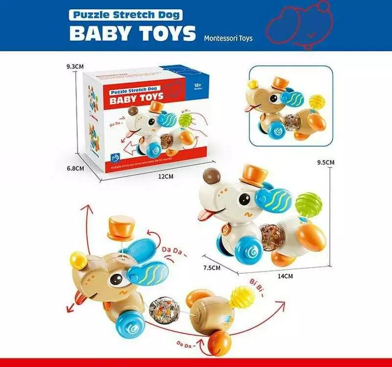 Розвивальна іграшка 9093 (168) 2 кольори, "Собачка", тріскачка, брязкальце, елементи на гумці, пискавка, в коробці