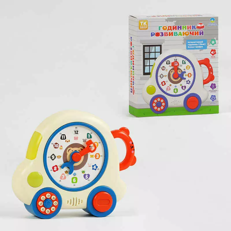 Розвиваючий годинник TK - 81822 (24) "TK Group", ОЗВУЧУВАННЯ УКРАЇНСЬКОЮ МОВОЮ, пісні, казки, цифри, підсвічування, рухомі елементи, в коробці