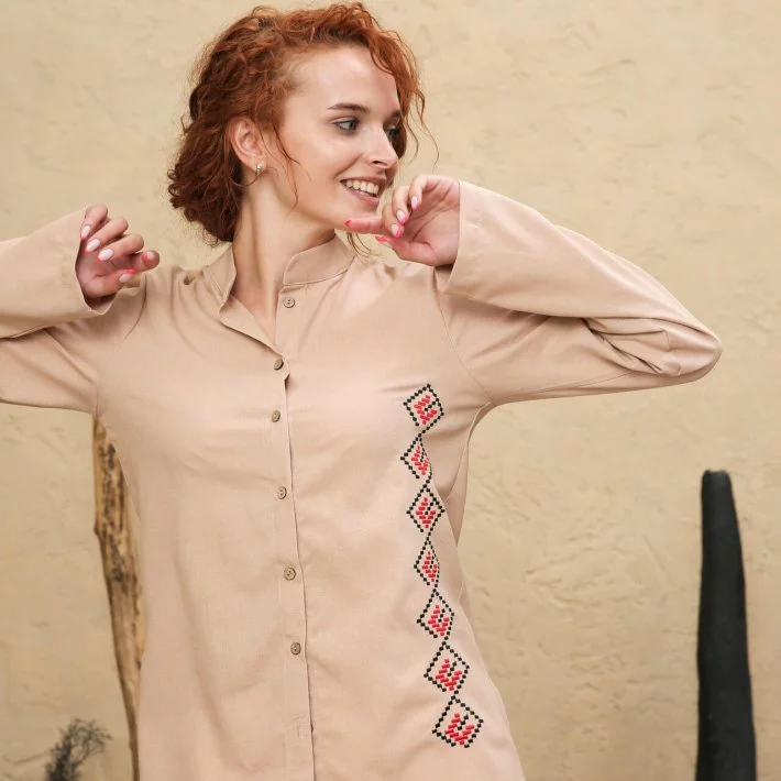 Сорочка-піджак прямого крою з натурального льону, попереду застібка