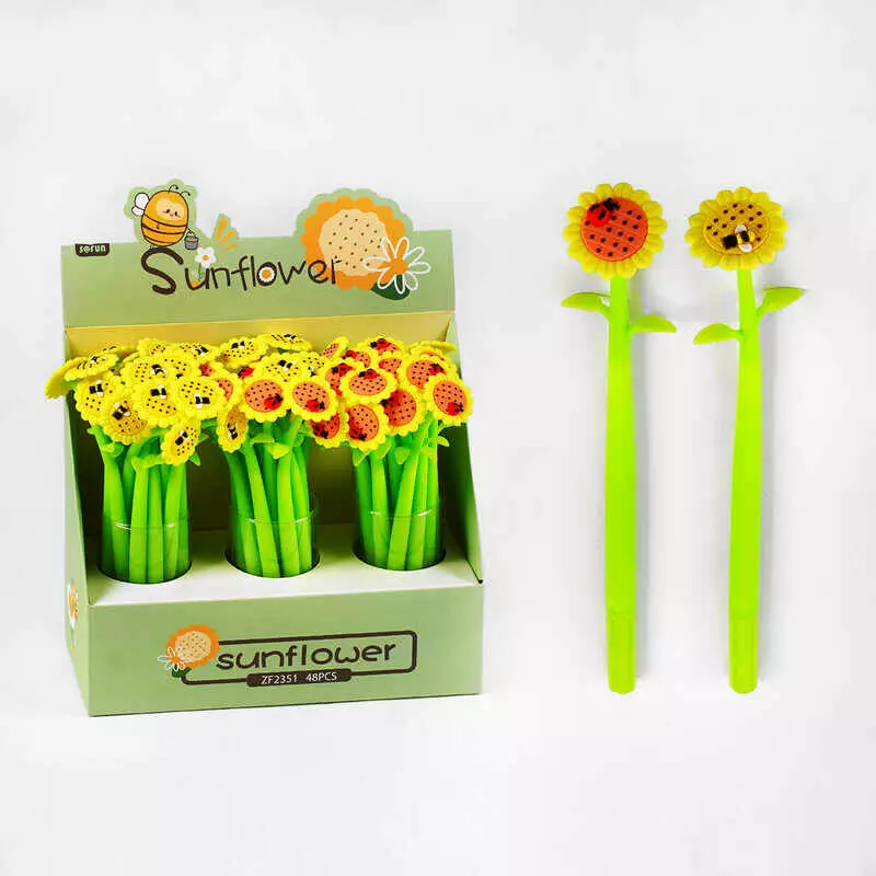 Ручка C 60783 (30/3) ЦІНА ЗА 48 ШТУК В БЛОЦІ, "Соняшник", гелева, синя паста