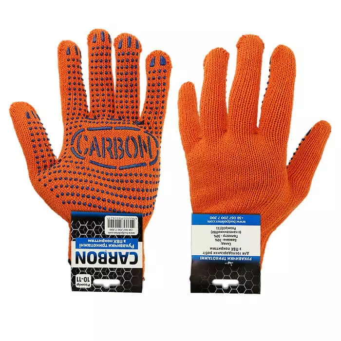 Робочі рукавиці в’язані натуральною бавовняною ниткою з нанесенням