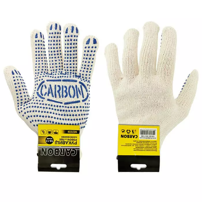 Робочі рукавиці в’язані натуральною бавовняною ниткою з нанесенням