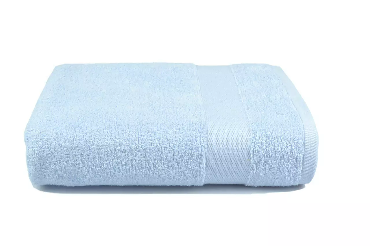 Рушник махровий  з декоративним бордюром, колір блакитний.  Це 100% натуральний рушник з високою і м'якою махровою петлею. Сучасний бордюр рушника має ширину 5 см. Рушник не линяє, стійкий до стирання і прання. Цей рушник є чудовим варіантом для домашнього використання, салонів краси і кращим співвідношенням ціна-якість.