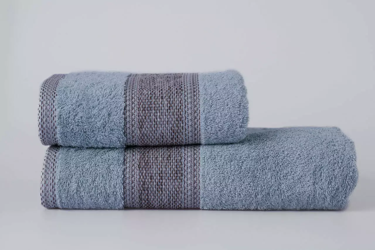 Рушник  махровий "Преміум" з декоративним бордюром, колір блакитний. Рушник виготовлено з 100% високоякісної бавовни. Край рушника з двох сторін прикрашений дизайнерським бордюром шириною 9 см. Він не линяє, стійкий до стирання і прання. Ідеально підійде для SPA центрів, салонів краси, готелів, спортивних баз. Цей рушник є найкращим варіантом для подарунку Вашим близьким чи знайомим.