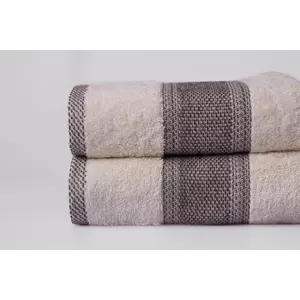 Рушник  махровий "Преміум" з декоративним бордюром, колір молочний. Рушник виготовлено з 100% високоякісної бавовни. Край рушника з двох сторін прикрашений дизайнерським бордюром шириною 9 см. Він не линяє, стійкий до стирання і прання. Ідеально підійде для SPA центрів, салонів краси, готелів, спортивних баз. Цей рушник є найкращим варіантом для подарунку Вашим близьким чи знайомим.