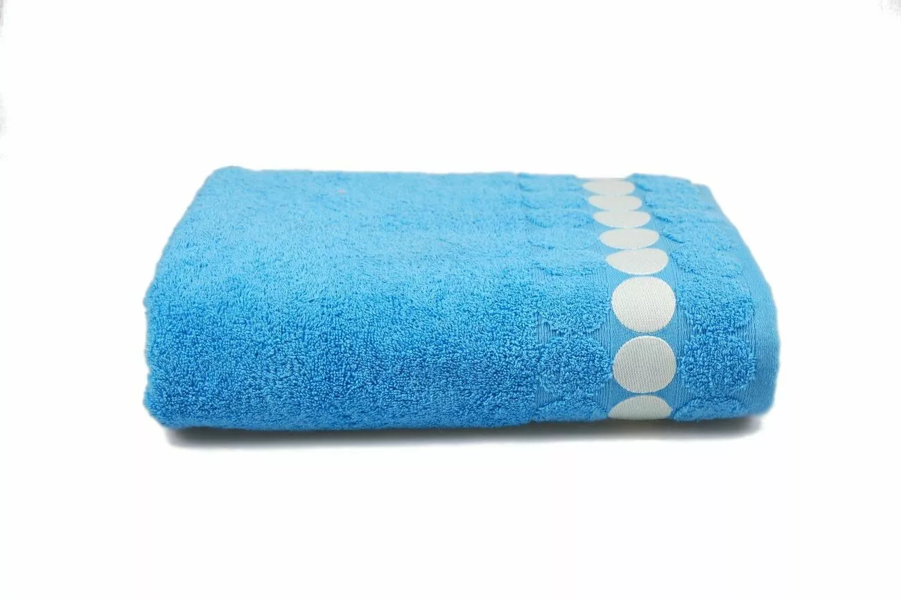 Махровий рушник з модним бордюром з кружечками.