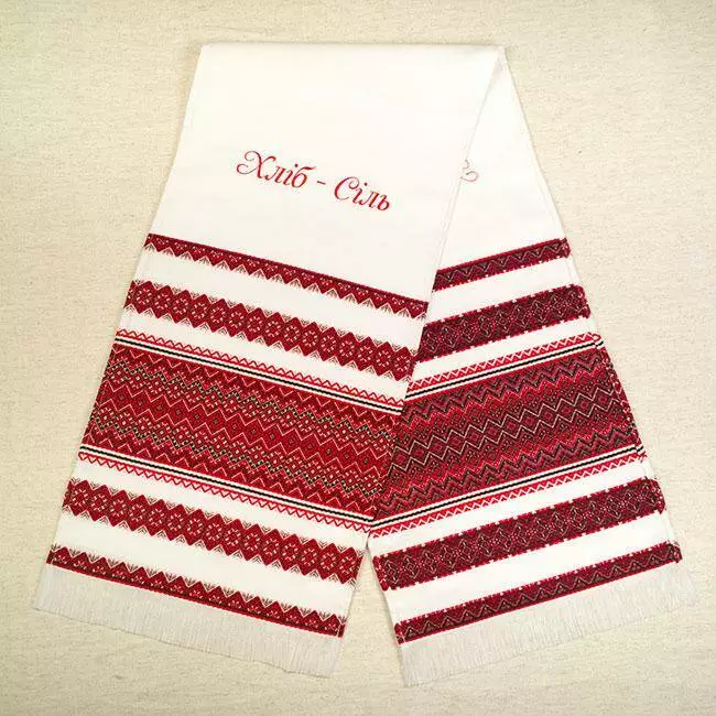 Вышитой дорожкой украшают иконы, которыми благословляют молодоженов родители. Каравай всегда несут на вышитом рушнике. Молодым ложат дорожку вышитую на свадьбу "На щастя На долю" под ноги, и конечно же используют свадебный рушник для связывания рук.