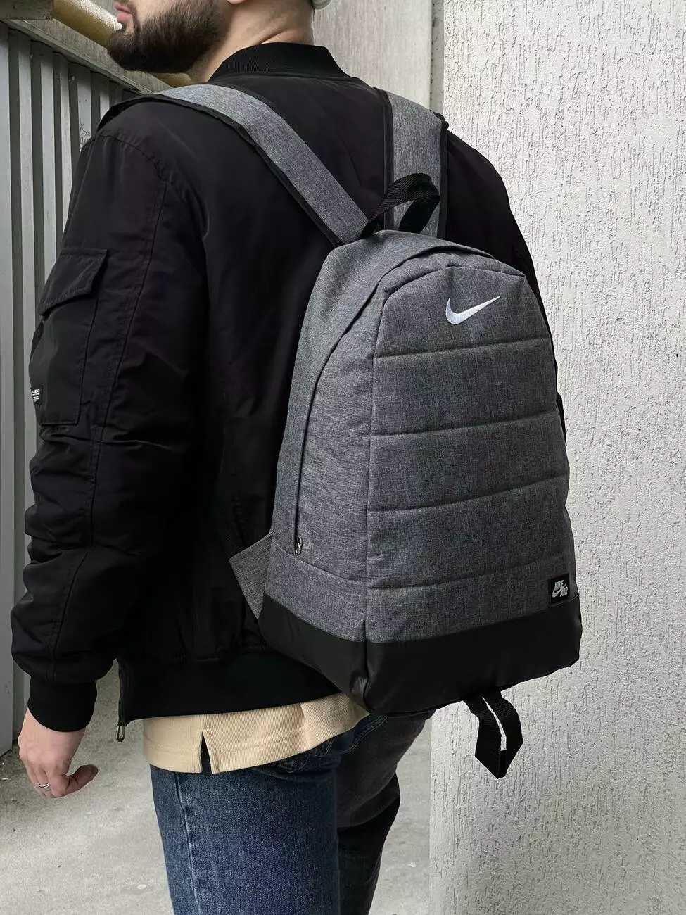 Рюкзак Матрас серый меланж Nike (белое лого)