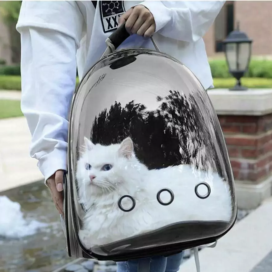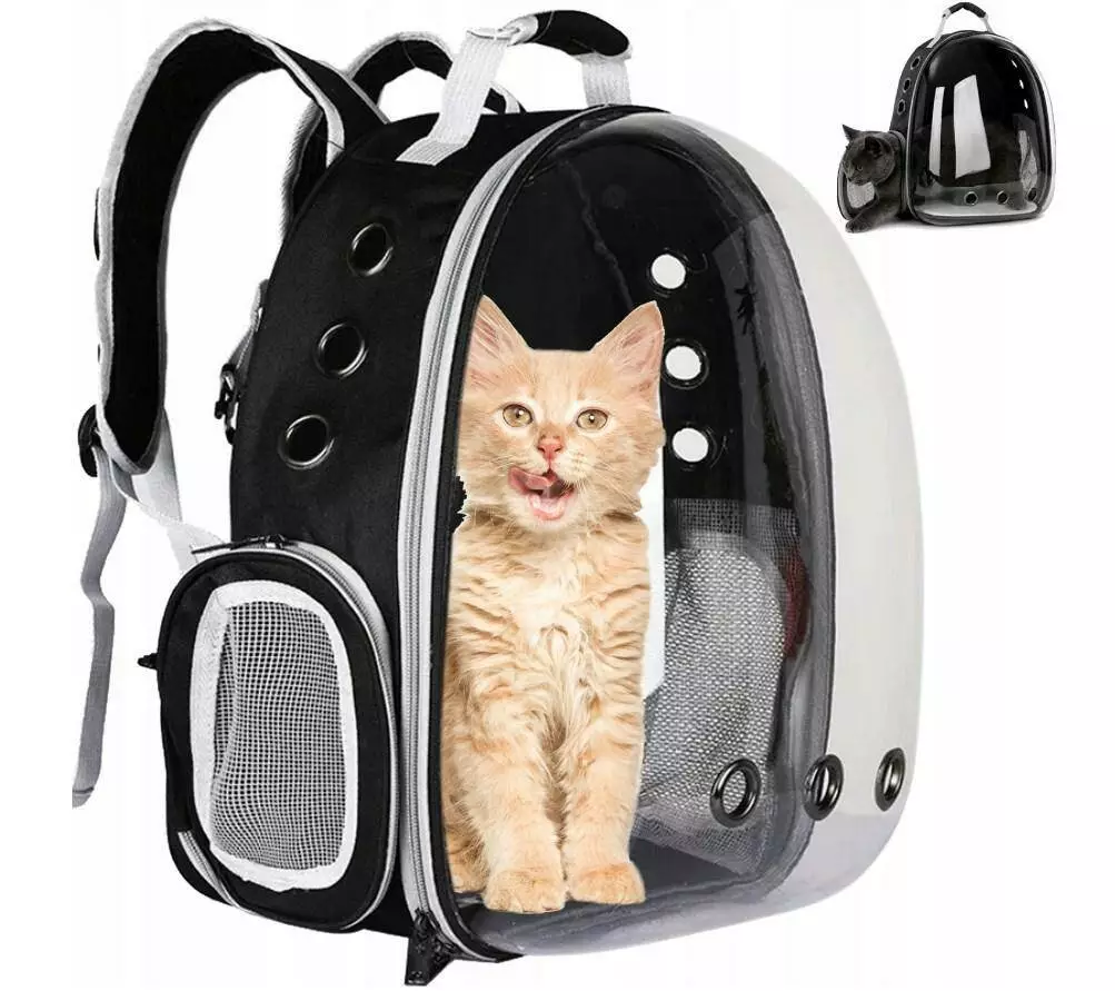 частина рюкзака - прозоре оргскло. Тому кіт може спостерігати за