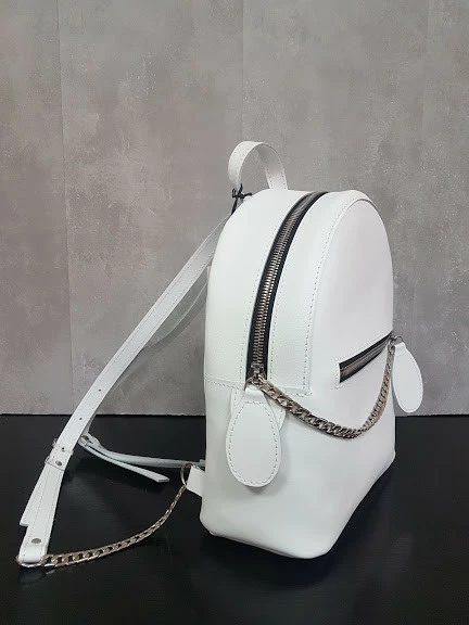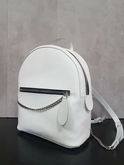 Невероятно удобный рюкзак из качественной натуральной кожи. Отлично держит форму и очень вместительный.Цепочка придает рюкзачку оригинальность.Имеет одно большое отделение, внутри на подкладке.