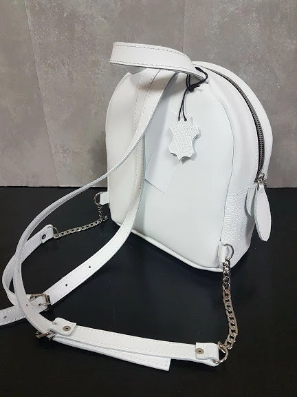 Невероятно удобный рюкзак из качественной натуральной кожи. Отлично держит форму и очень вместительный. Цепочка придает рюкзачку оригинальность. Имеет одно большое отделение, внутри на подкладке.