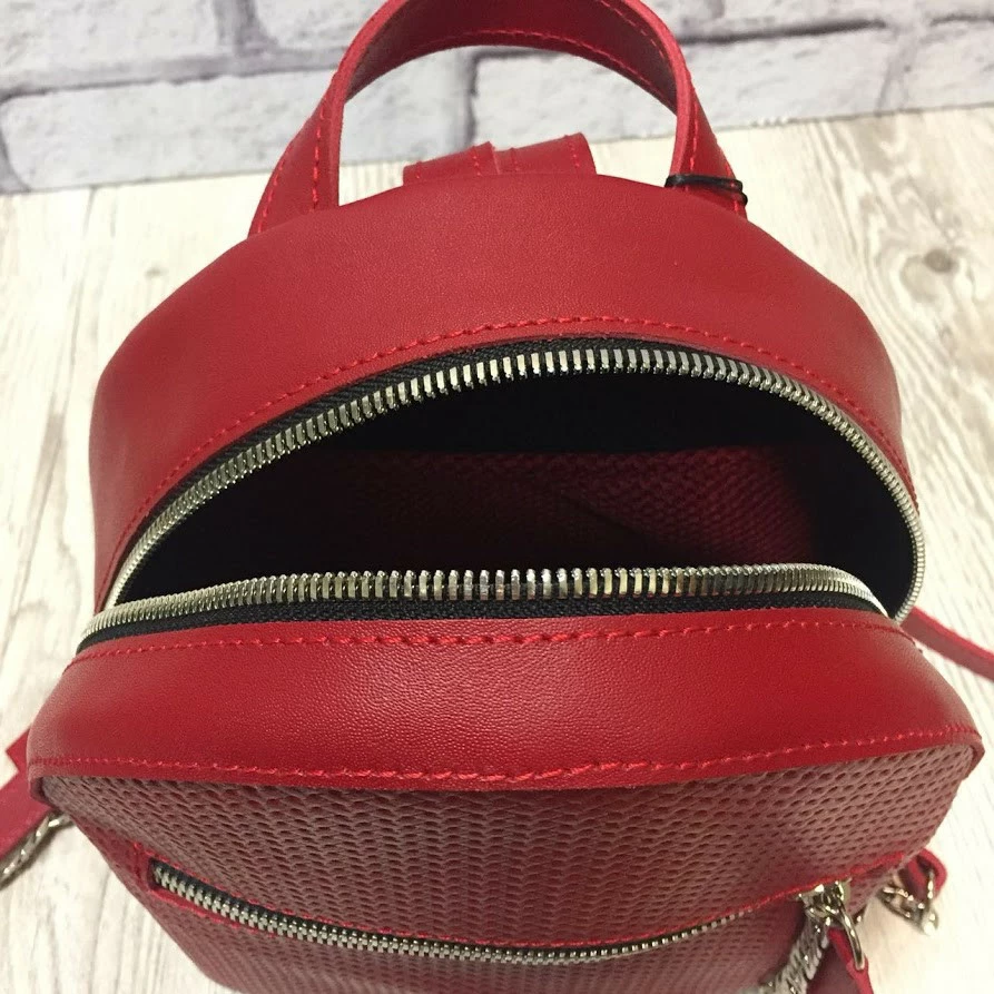 Рюкзак "Шайн" натуральная кожа, красный матовая с плетенкой
