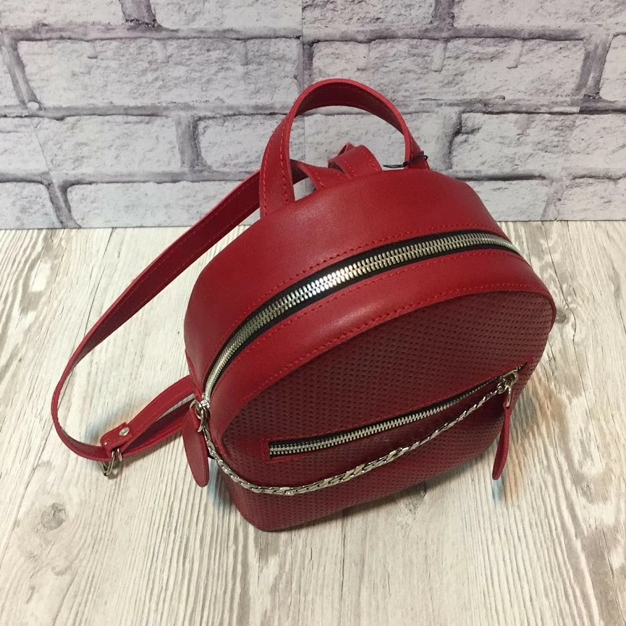Невероятно удобный рюкзак из качественной натуральной кожи. Отлично держит форму и очень вместительный.Цепочка придает рюкзачку оригинальность.Имеет одно большое отделение, внутри на подкладке.