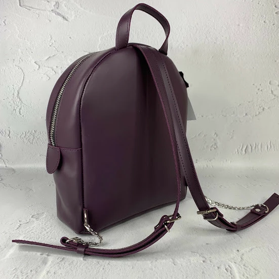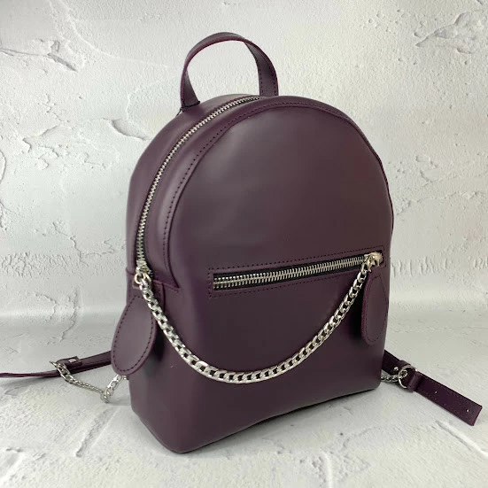 Невероятно удобный рюкзак из качественной натуральной кожи. Отлично держит форму и очень вместительный. Цепочка придает рюкзачку оригинальность. Имеет одно большое отделение, внутри на подкладке.