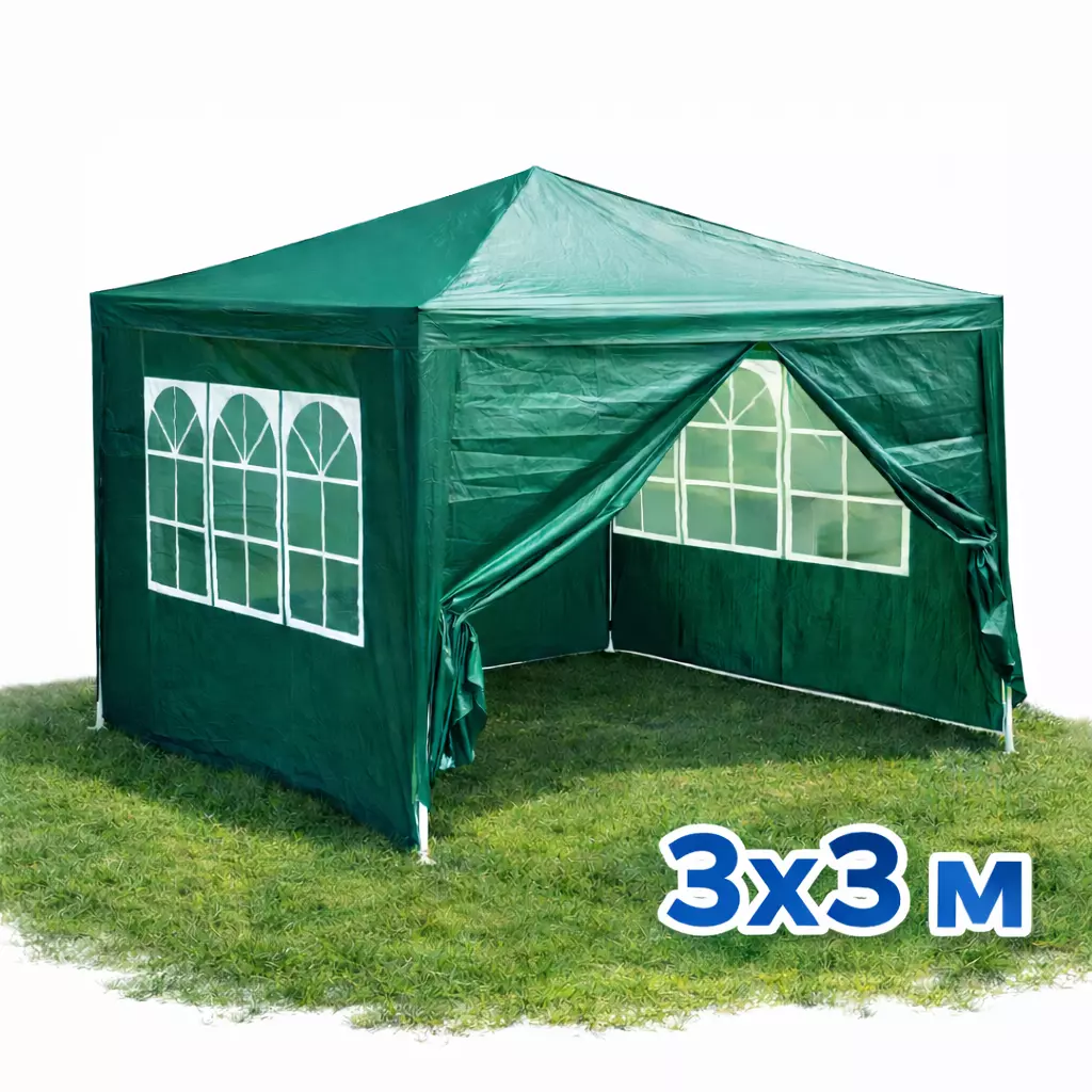 тент (3x3x2,5 м) 4 стінки, з вікнами, Зелений