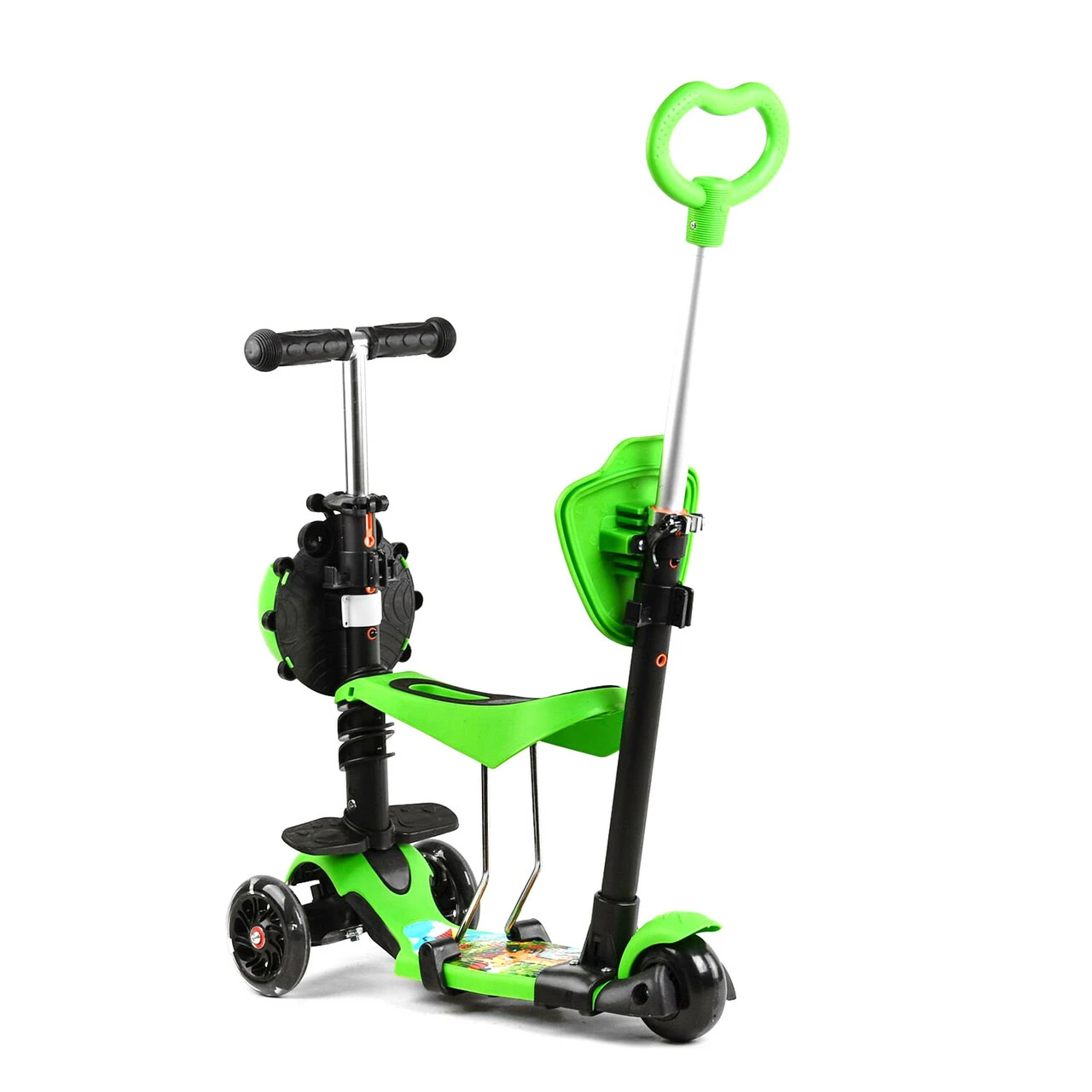 Самокат 5 в 1 с защитным бампером Scooter со световым эффектом Зеленый 6900066351136